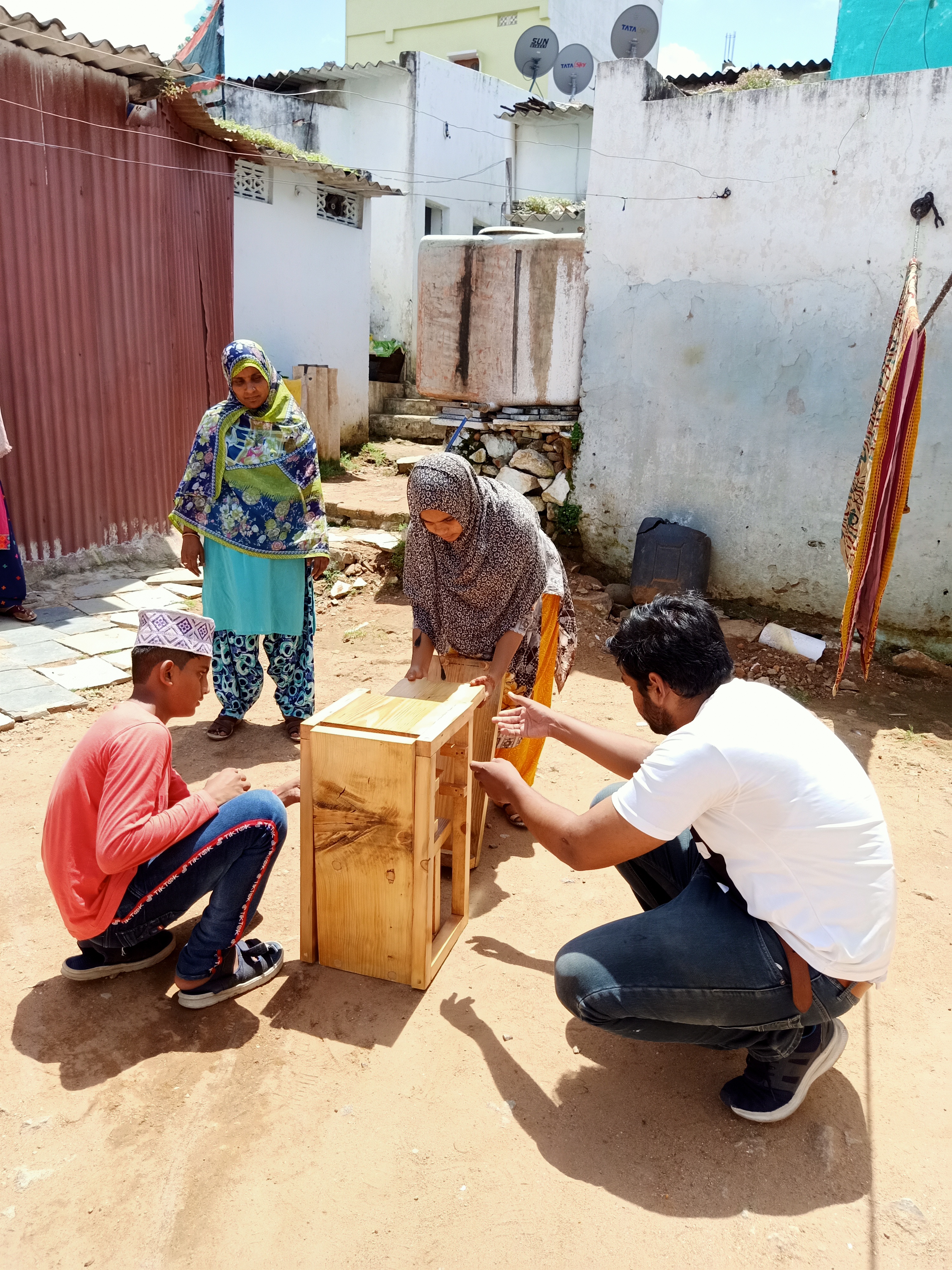 Winner design of innovative furniture competition was built by Ketham’s Atelier Architects and the same was donated by Thinking Hand NGO to the neglected community at Kishan Bagh, Hyderabad, India and this initiative brought smiles and excitement in Kishan Bagh locals with functional furniture.